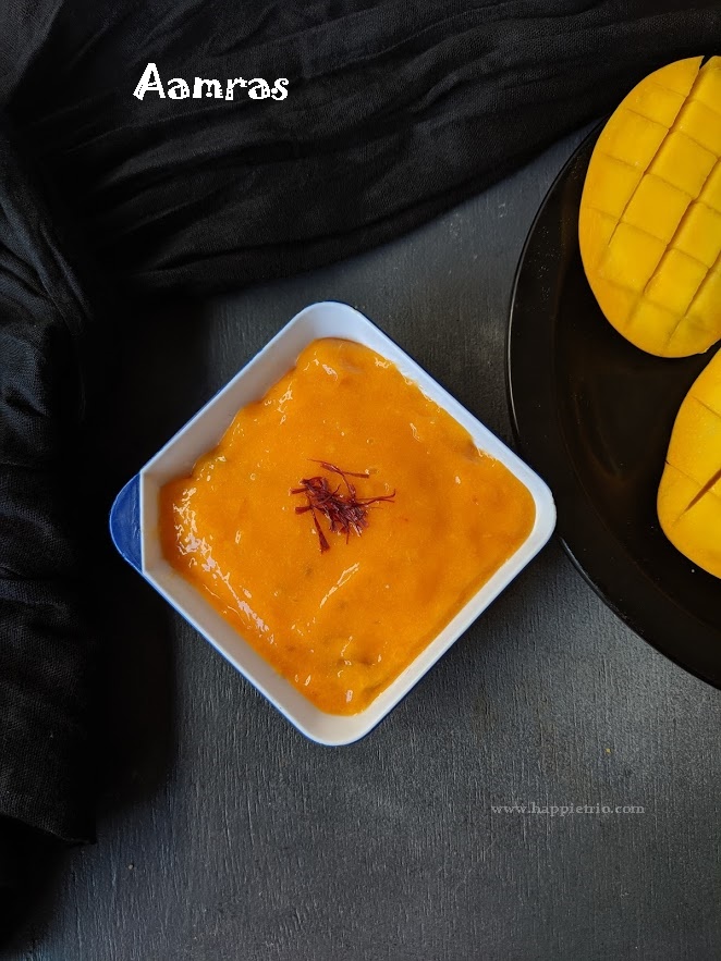 Aamras Recipe| Aamras Puri | Mango Pulp Recipe with step by step pictures. When the Mangoes are in season I try to make the most use of it. Aamras literally translates to Mango Juice. It is very popular in the states of Maharashtra and Gujarat. Usually itis prepared with Alphonso Mango Variety. When the Mangoes are in Season they usually prepare it in bulk and then freeze so that they can enjoy it throughout the year. Now lets see how to prepare this delicious Mango dessert.