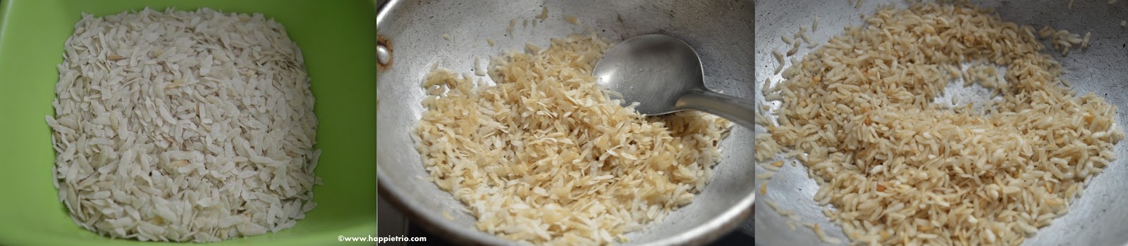 2. In the same pan now add in the Aval /Poha and roast till they turn crisp .Once they turn crisp remove from the pan and set it aside till use.