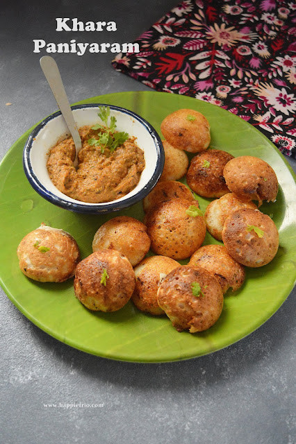 Chettinad Khara Kuzhi Paniyaram Recipe | Kuzhi Paniyaram step by step pictures. Paniyaram is a very popular snack in the south india, however it is called with different names in different south indian states as Paddu, Ponganalu .It can be prepared with the Idli Dosa batter itself. However instead of idli rice you can use raw rice for crispier paniyaram. It goes well with any spicy chutney.