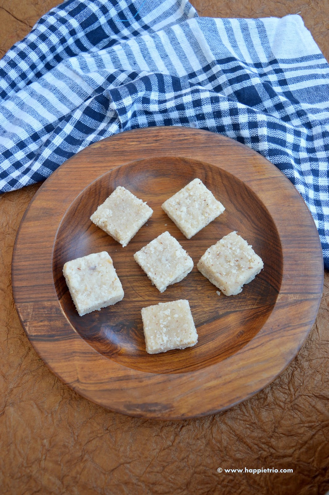 · Never compromise the amount of sugar used as it gives the burfi consistency.