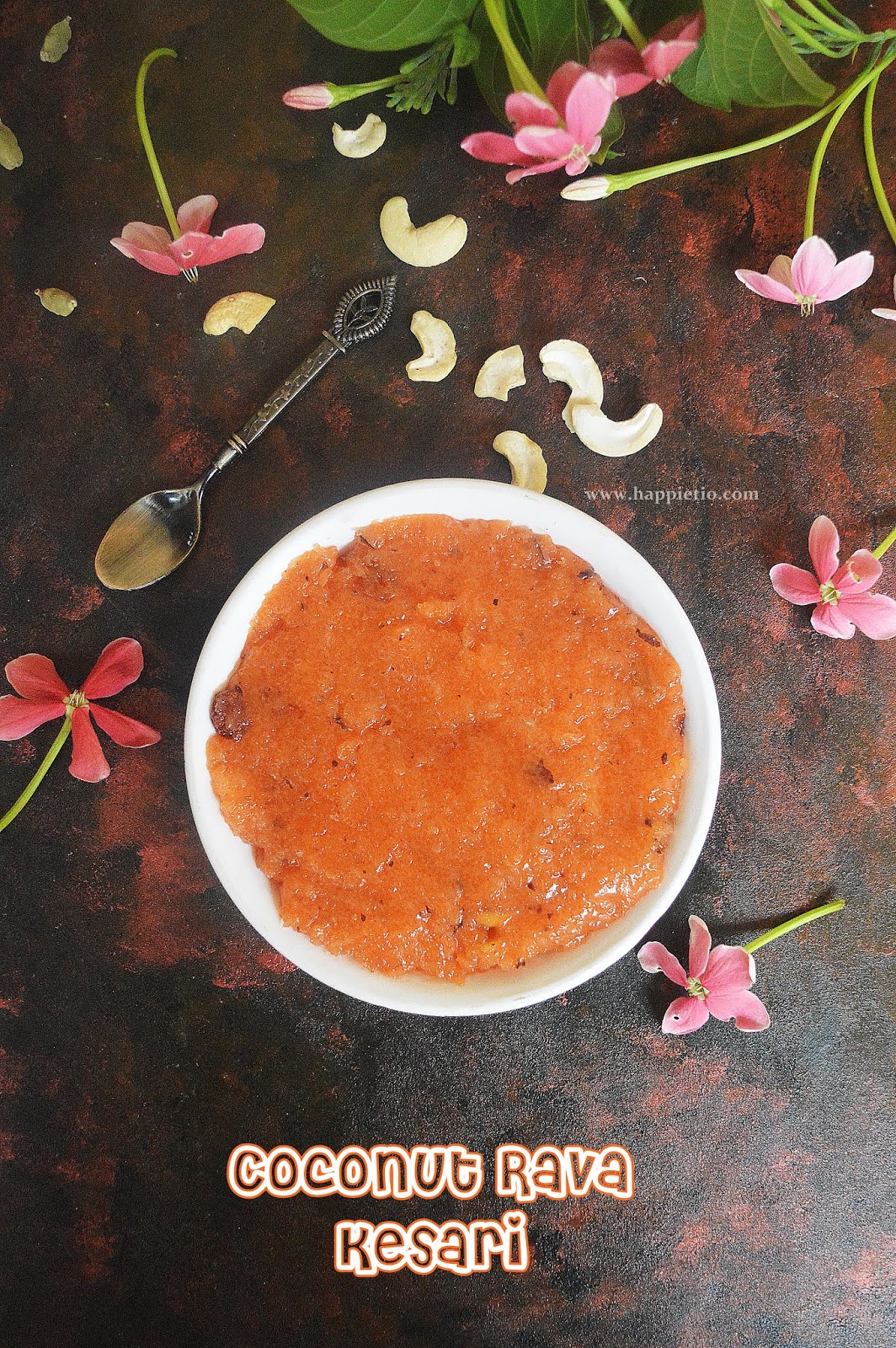 Coconut Rava Kesari is an easy festival dessert with coconut and Sooji. Coconut and Rava combine and give a yummy flavor.