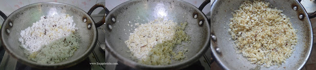 2. In the same pan add another 2tbsp of ghee and roast the coconut in a low flame for 5 mins. Remove it and set aside.