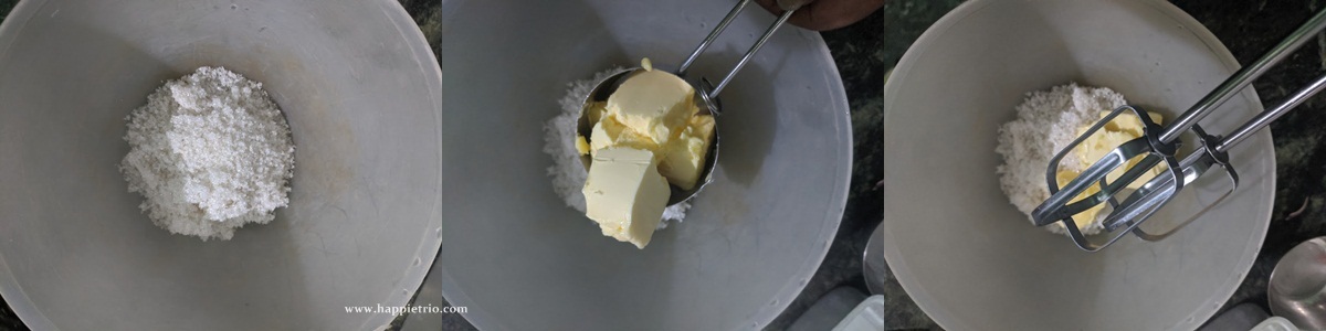 1.In a mixing bowl add in the sugar and room temperature butter. cream the butter and sugar together until light and creamy.