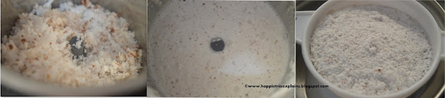 - Break Open a coconut and grate the coconut .Now take the grated coconut in a blender or food processor and add in 1 cup of water.