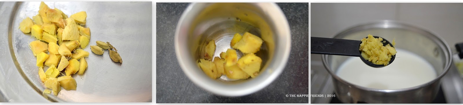 - Wash and peel the ginger skin. Roughly Chop Ginger and crush the chopped ginger and cardamom in a mortar and pestle. or crush coarsely in a blender