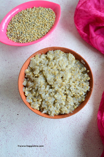 How to cook Bajra/Kambu/Pearl Millet rice recipe with step by step photos. Bajra is one of the Oldest grown Crops among all the Millets. It is widely cultivated in the African Sub continent and Indian Region. It is so rich in Protein, Iron and many other nutrients. Usually out of Bajra gruel is made using buttermilk and had for lunch .It is so filling and heavy and keeps us really full.