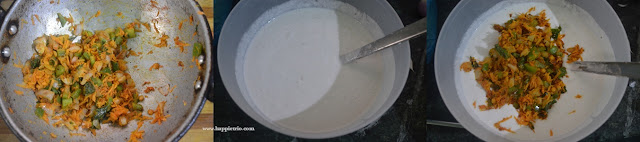 3. Switch off the flame and then take the idli dosa batter. Add the prepared masala to the batter and mix well.