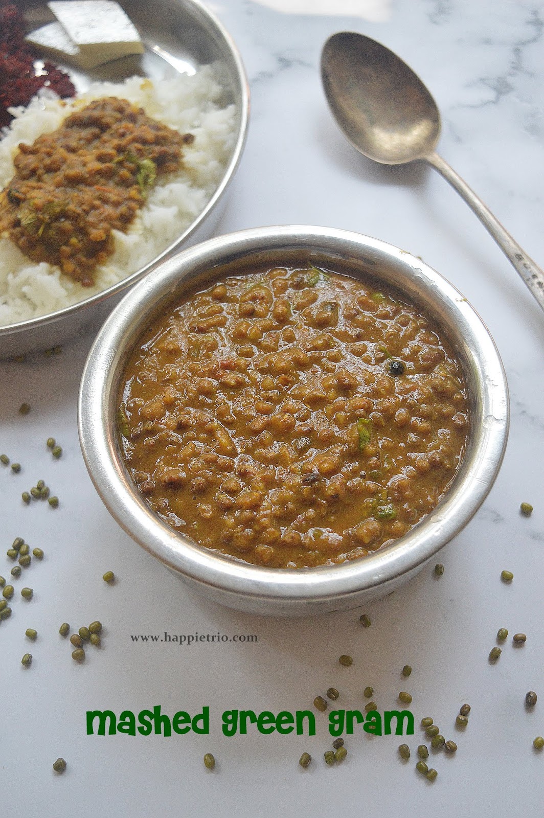 - Next add in the tomatoes and cook till it leaves oil. Now add in the washed green moong dal.