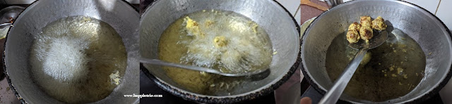 7. Now dip the shaped ladoos in the rice paste and deep fry in a medium flame until its well-cooked. Drain the excess oil and store in air tight containers.