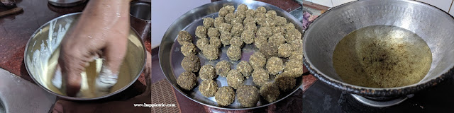 - Now dip the shaped ladoos in the rice paste and deep fry in a medium flame until its well-cooked. Drain the excess oil and store in air tight containers.