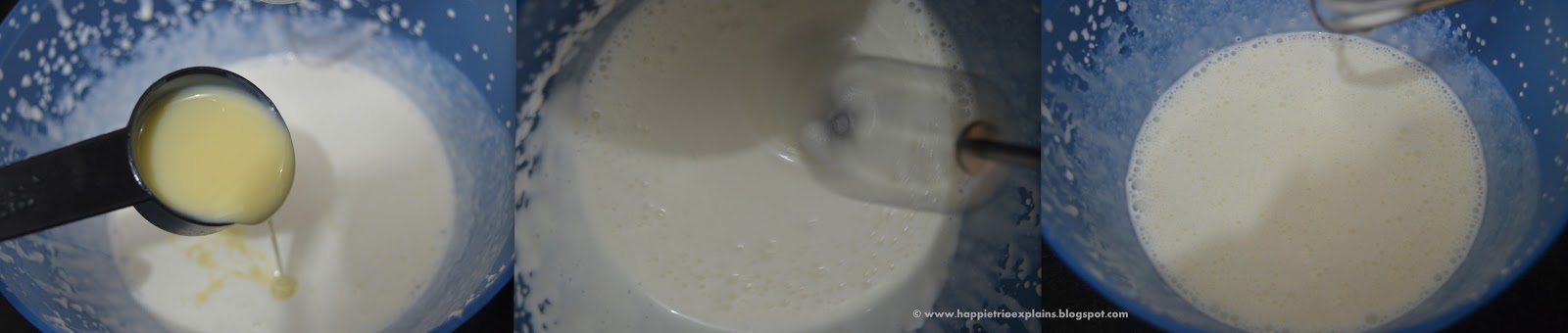 2. Now add in the condensed milk and whip once gain such that both cream and condensed milk are blended evenly. This is the ice cream base we can customize the ice cream with as many flavours as we need.