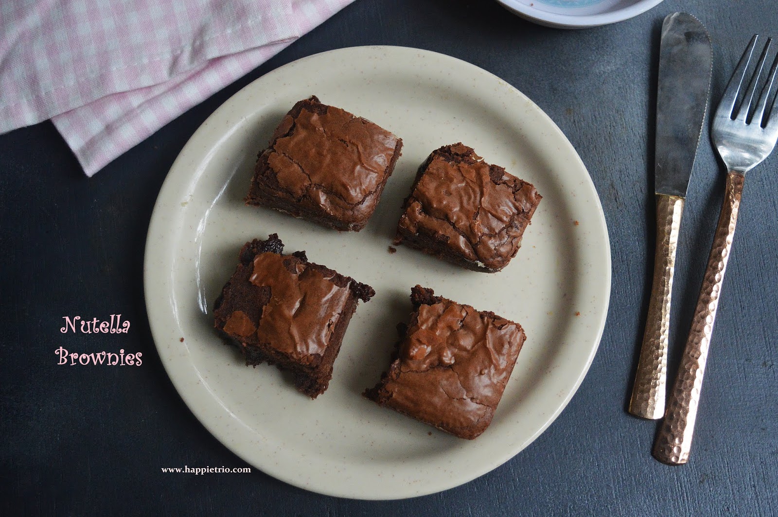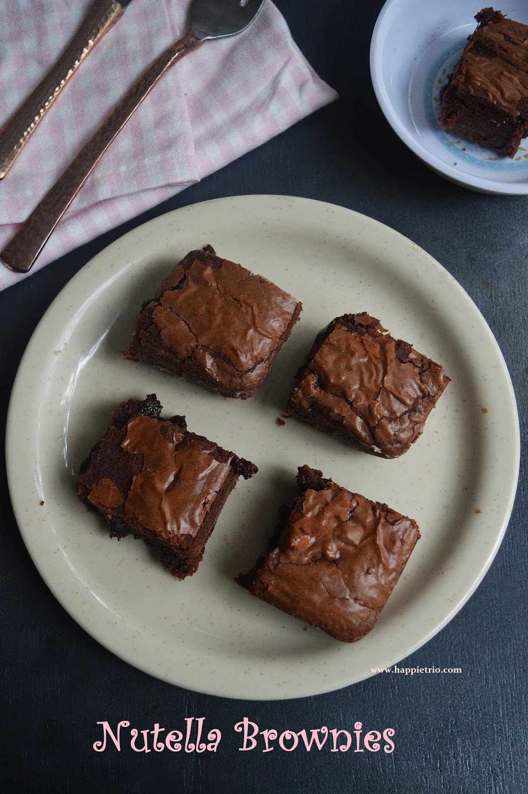Last month I got a gift from my friend a big fat jar of Nutella. In the mission of emptying the Nutella I made some gooey brownies. You can expect more recipes with Nutella soon.