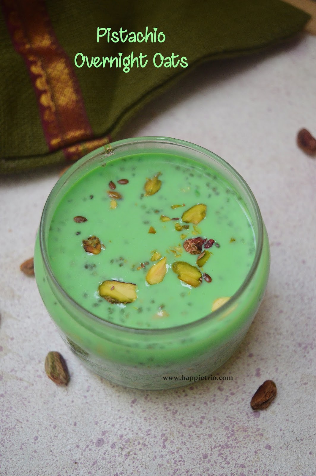 Pistachio Overnight Oats with step by step pictures. Its simply yummy .Feel free to add in all your favourite nuts and flavour