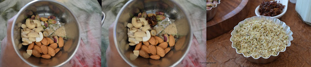 1. In a blender add in all the ingredients, Blend everything to a coarse powder. Store and use it for making Thandai. Will share the Thandai recipe soon.