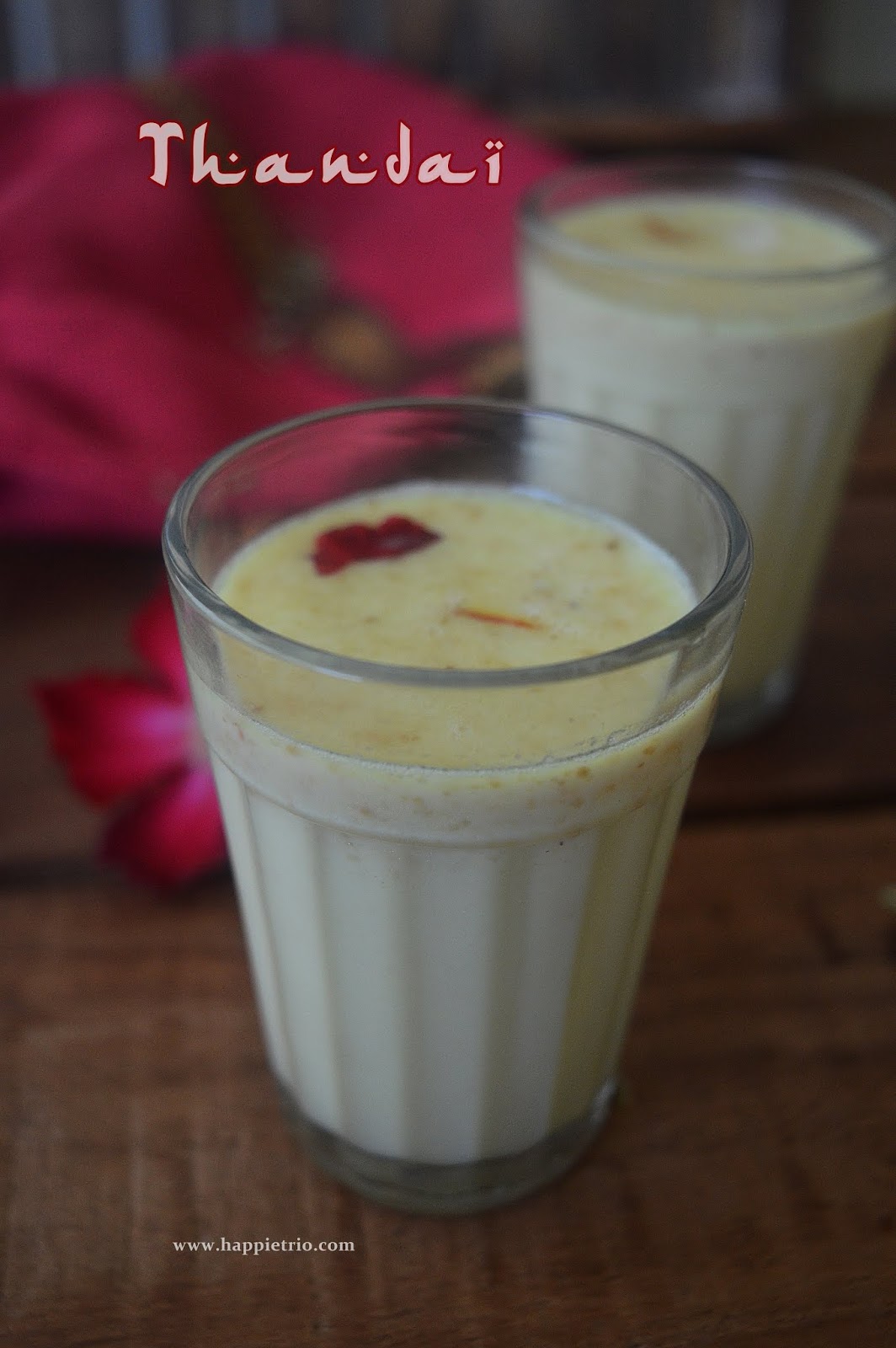 Thandai is a drink made during the holi festival in the north India. It is prepared by reducing milk and flavoured with a variety of spices and nuts.