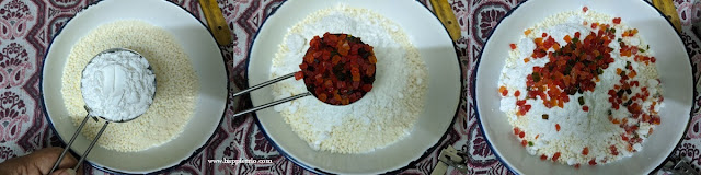 1. In a mixing bowl add in the Desiccated coconut, Milk powder and Rice Krispies.